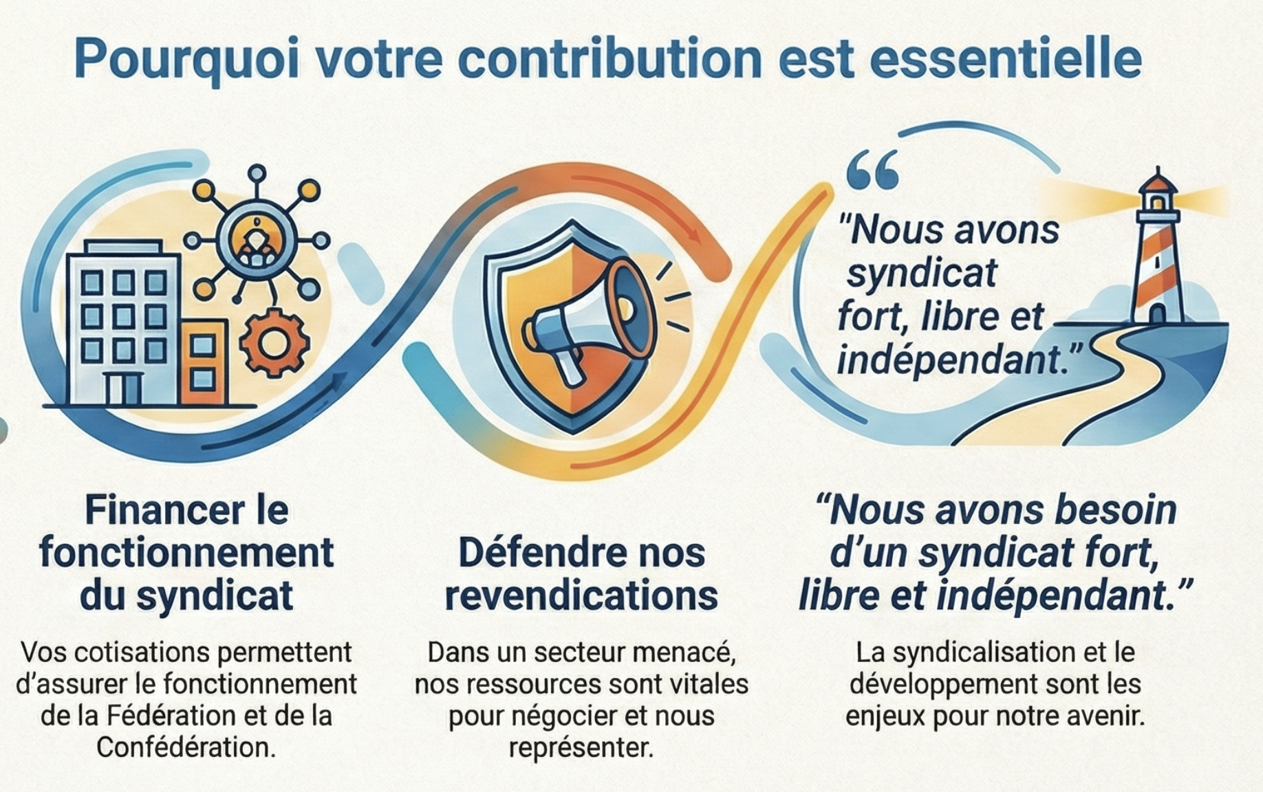 Réunie à Rennes le 22 novembre 2024, la Commission Exécutive de l'UD FO 35 affirme que l'action syndicale résolue et lucide est absolument indispensable pour résister à la régression sociale et démocratique et être à la hauteur de notre histoire et des enjeux à venir. Cela nécessite notamment d'avoir les moyens financiers, par les cotisations et l'aide militante, de notre indépendance de pensée et d'action.