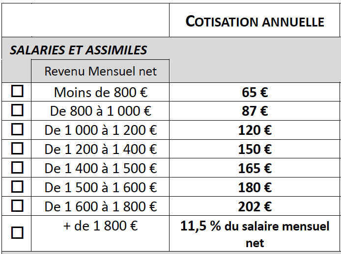 - Pour les retraités, la cotisation est de 46 € + 1,1 % de la pension de retraite mensuel